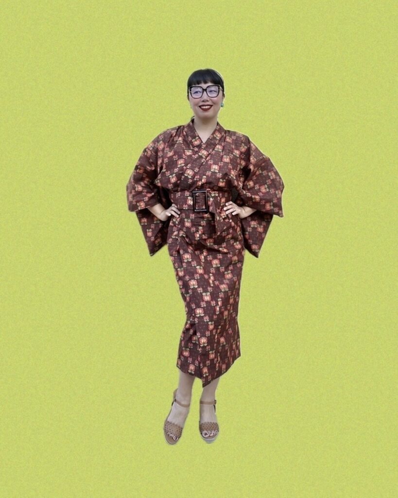une créatrice Japonaise autodidacte qui fabrique et relooke des Kimonos avec passion dans son atelier sur la cote d’azur avec l’envie de partager la joie de porter un Kimono Japonais sans ses contraintes.